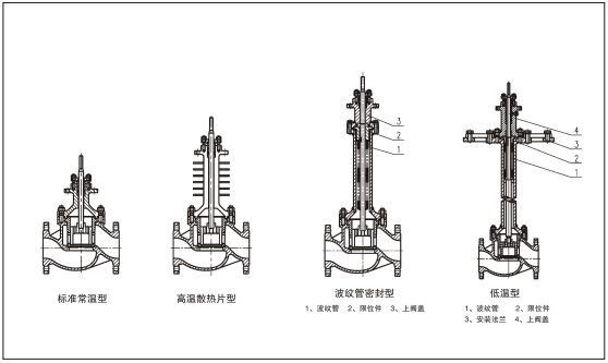 | 系列類型 | 常溫型、中溫型、低溫型。波紋管密封型、夾套保溫型、調節切斷型 | |||||||||||||||||||||||||||||||